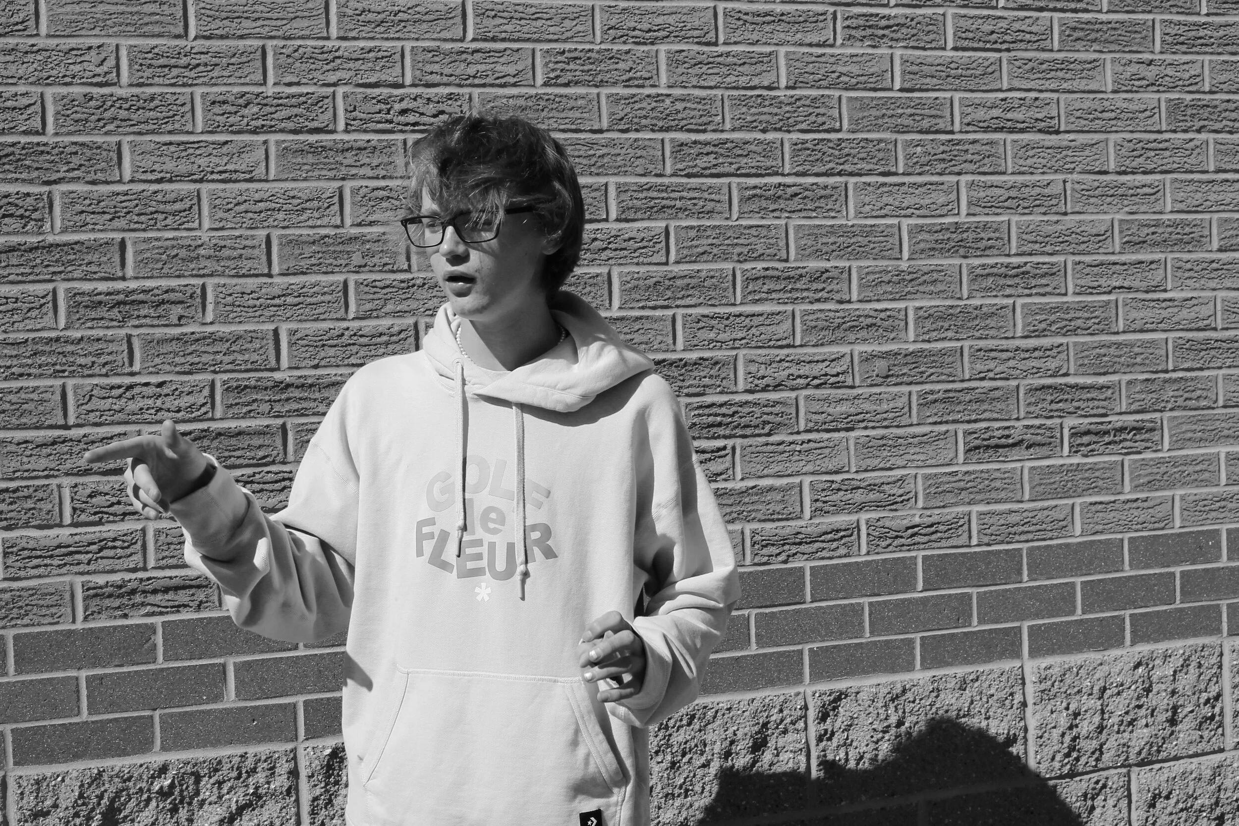 “I like to dress the way that I like to dress,” Finn said, sporting a simple outfit of straight-leg jeans, suede Nike Dunk Lows, and a green logo hoodie from Tyler, the Creator’s Golf le Fleur x Converse collaboration. Finn thinks it’s important to project a good image of himself, and feels that his everyday style is a great way to achieve that. Simply put, when he thinks he looks good, he feels good.